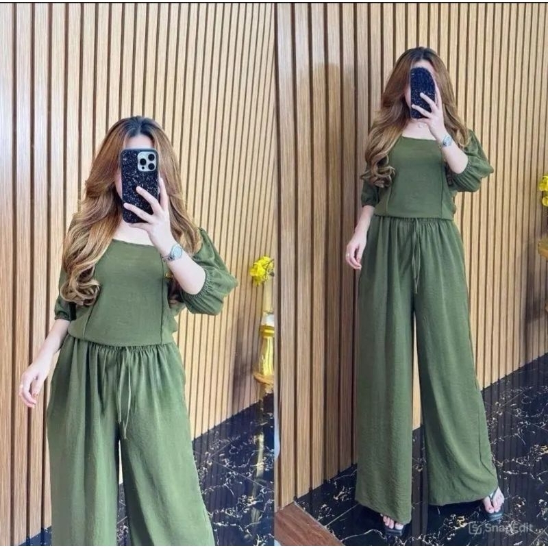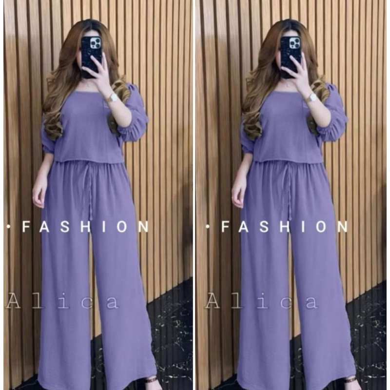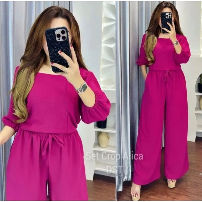 One set Cringkle Wanita / Setelan Alica Set Crop Top Wanita Kekinian /Baju setelan One set Crinkle