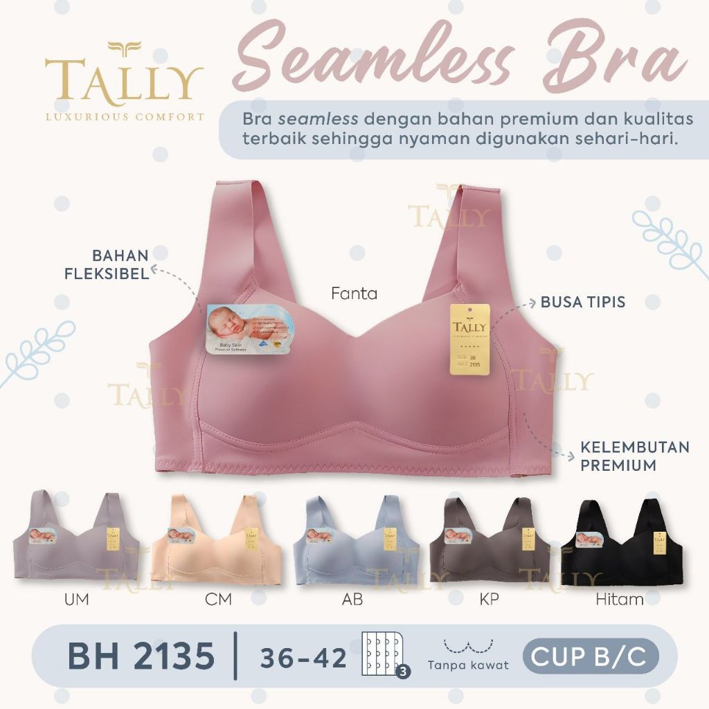 Tally 2135 Baby Skin Seamless Bra isi 1, 2, 3 pcs Bh Wanita Busa Tipis Cup B-C Full Tanpa Kawat Kait 3 Adem Sangat Lembu