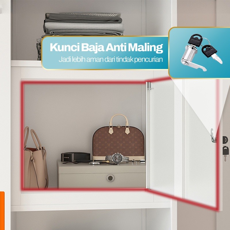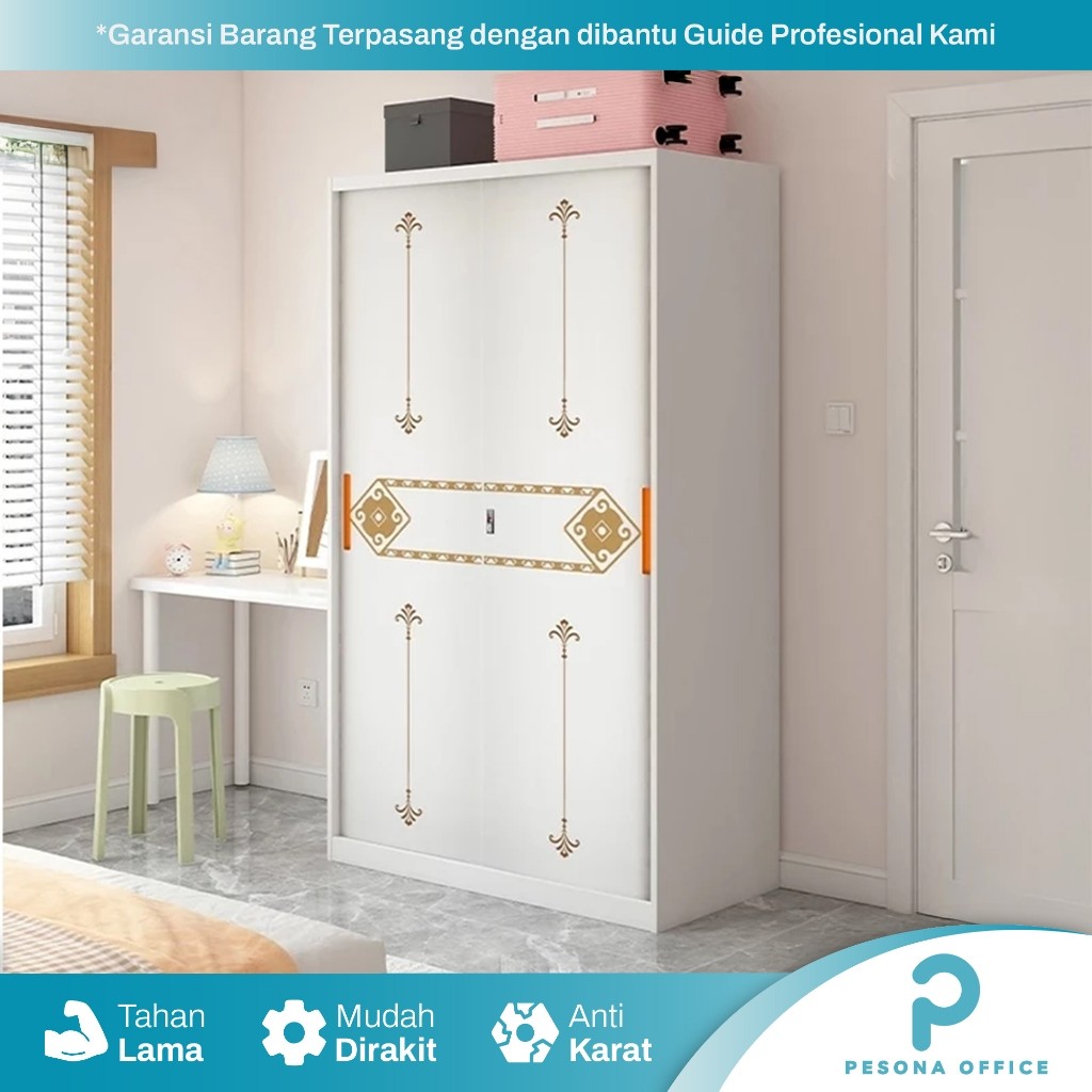 Lemari Pakaian Besi 2 Pintu Sliding Lebar 120 Anti Rayap Karat Lemari Baju Besi Motif Serbaguna