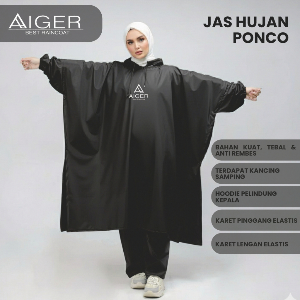 Aiger Jas Hujan Ponco dan Stelan Ponco Celana Mantel Hujan Kelelawar Bahan Pvc Tebal Elastis Raincoat Termurah