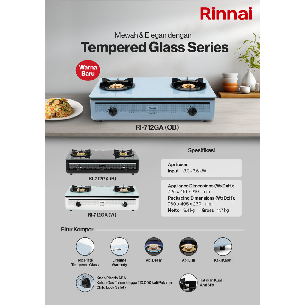 Rinnai Kompor Gas 2 Tungku RI 712 GA (OB)