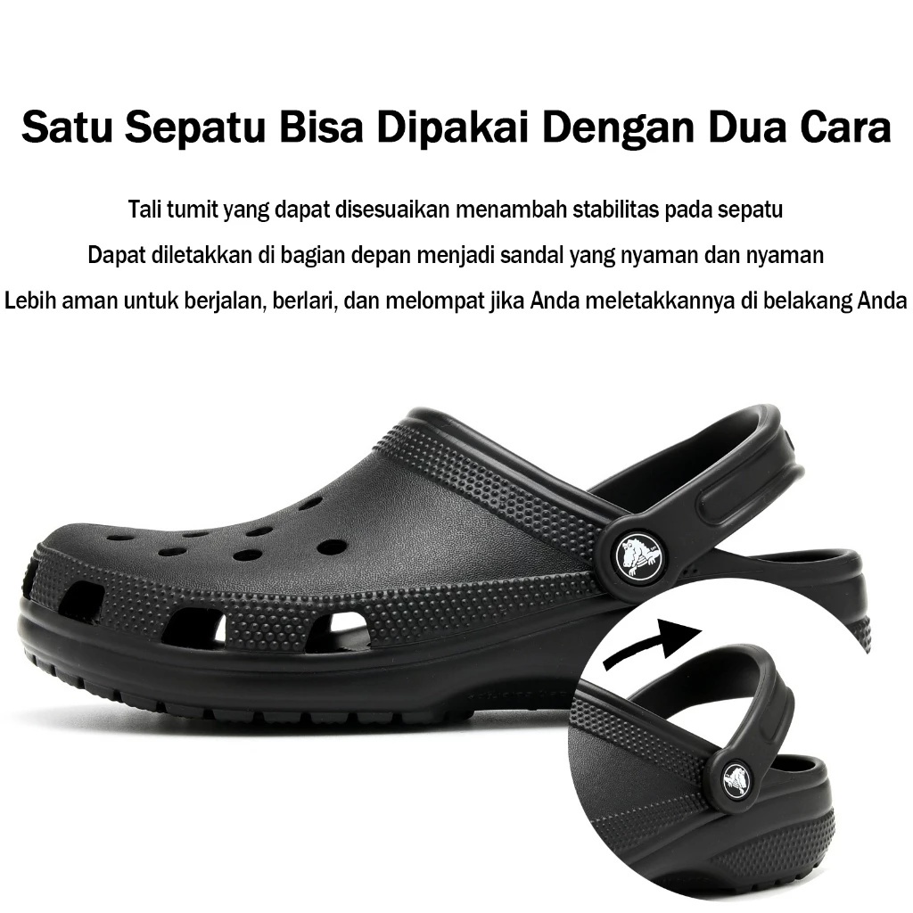 Crocs Uni Klasik Clog Sandal Hitam Bernapas Sepatu Pria Dan Wanita Klasik Ori