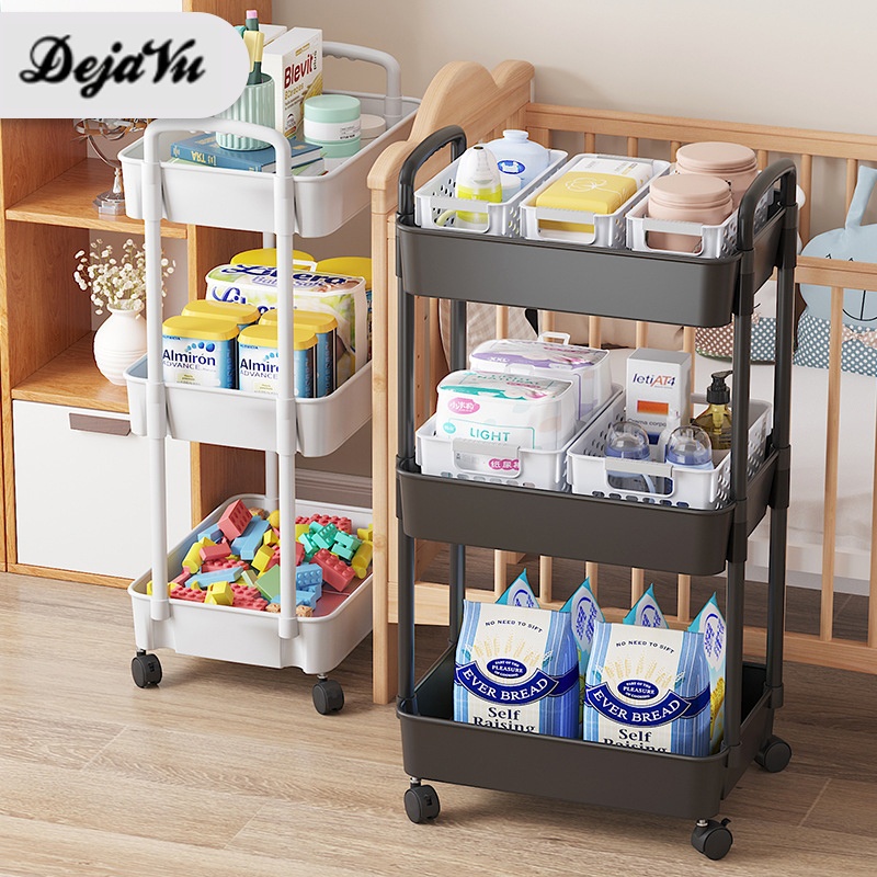 Dejavu Rak Troli Susun Serbaguna Rak Dapur Stainless Rak Salon Rak Kamar Mandi dengan Roda HRK506