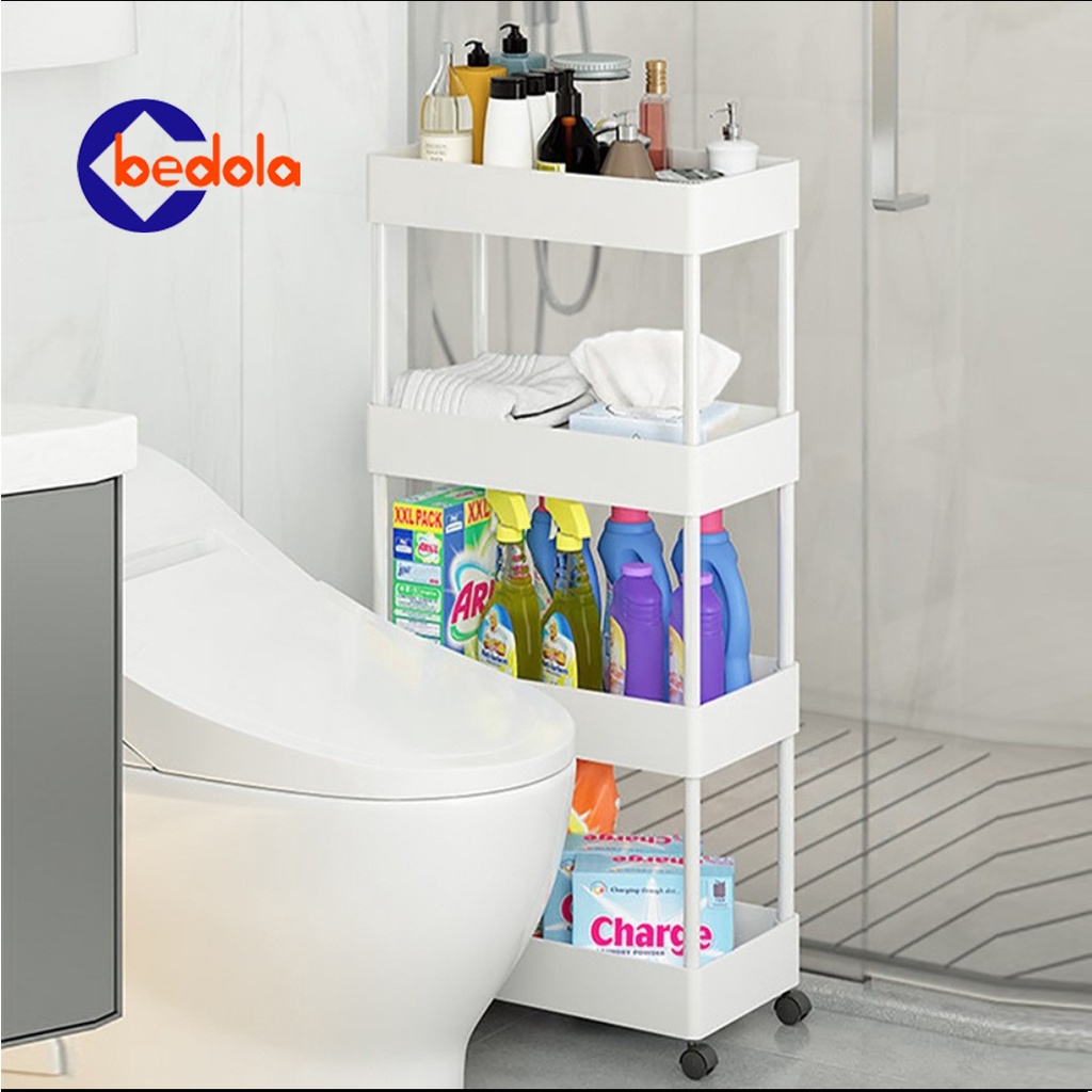Square rak dapur rak toilet rak susun serbaguna rak dorong rak salon rak troli 4 tingkat dengan roda