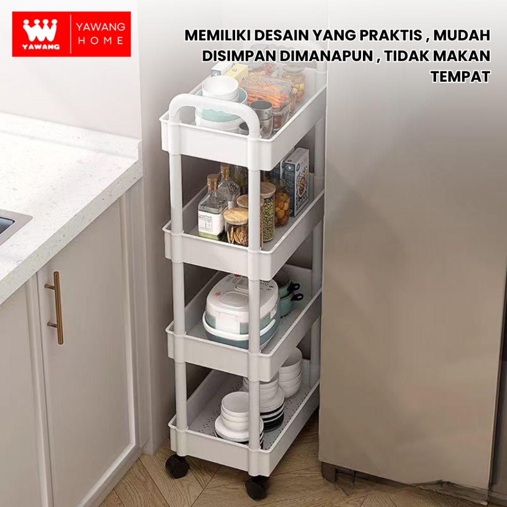 YAWANG Home Rak Susun Serbaguna 3 4 square rak dapur rak toilet rak dorong rak salon rak troli 5 tingkat dengan roda