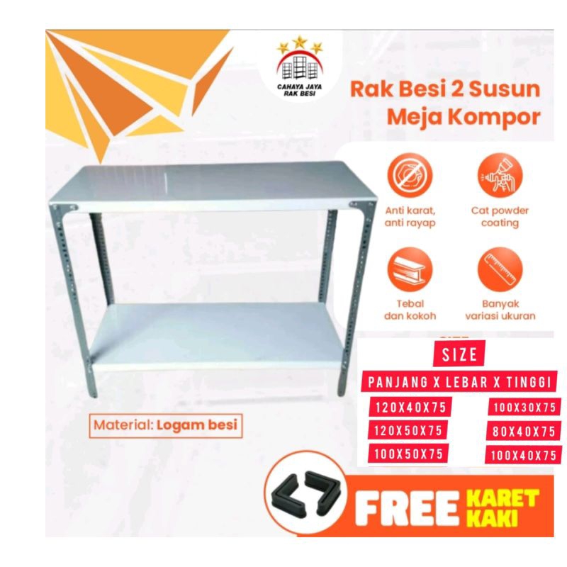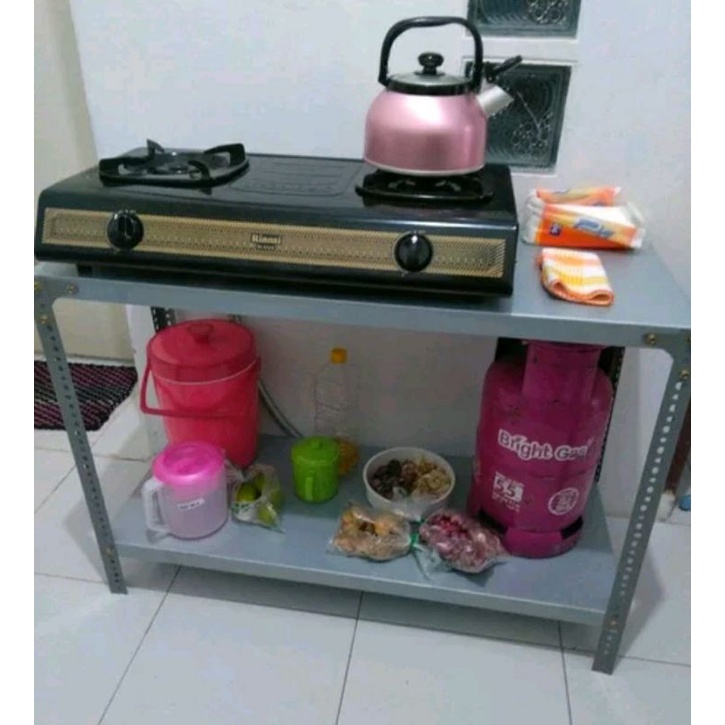Rak Besi 2 Susun Untuk Meja Kompor Minimalis Serbaguna Mudah Dirakit Kuat Kokoh Kaki Rendah