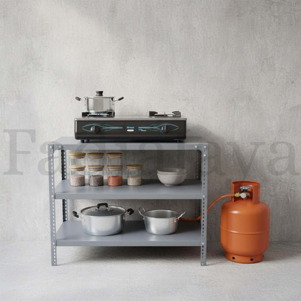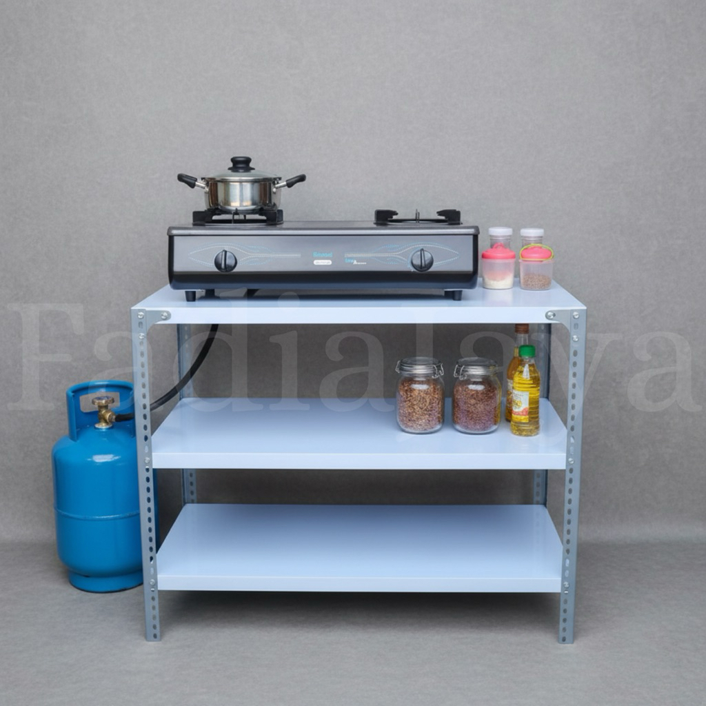 Meja Rak 3 Susun Besi Siku Lubang Kompor Gas 2 Tungku Dispenser Tv Portable Dapur Komputer Serbaguna