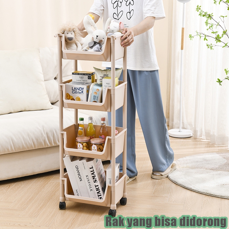 Liifung - Rak Susun Penyimpanan Terbuka Serbaguna Rak Trolley Susun Dengan Roda Rak Buku Tebal Plastik Toy Storage