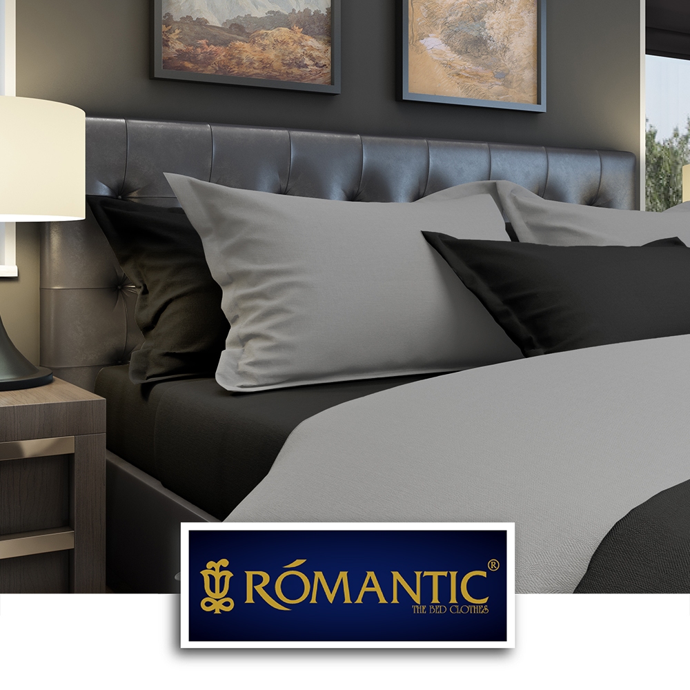 Two Tone Bedcover set hitam x abu by ROMANTIC 180 x 200 all varian size katun jepang adem halus