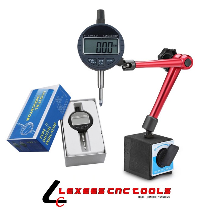 Paket Dial Indicator LEXEES Digital + Magnetic Stand Flexible Besar Gauge Indikator Set Magnet Base