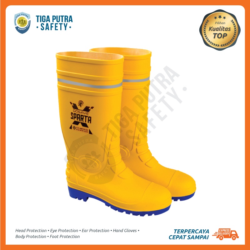 Sepatu Boots Safety Karet PVC Ujung Besi Pelindung Steel Toe X Sparta Anti Paku