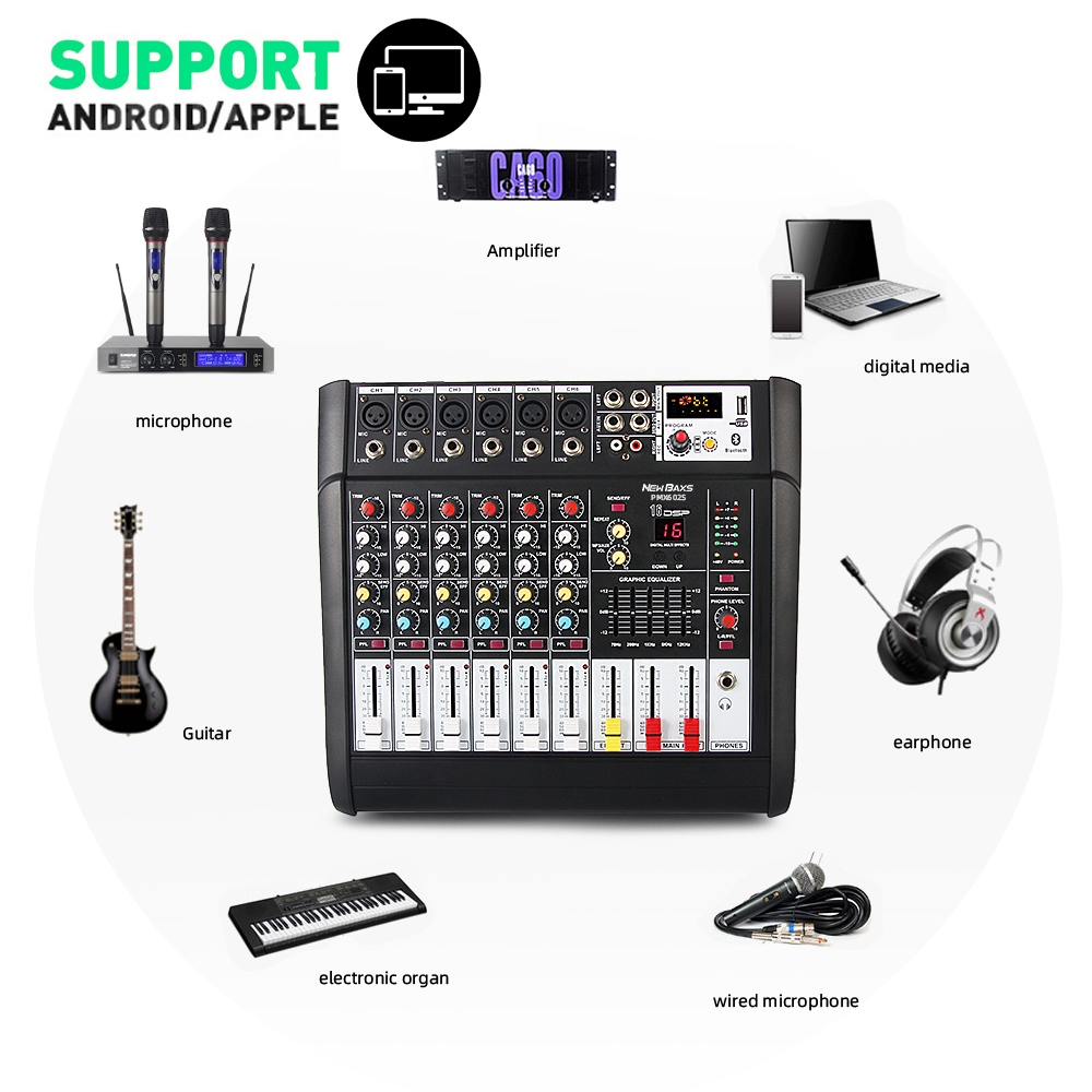 NEW BAXS PMX602D/PMX602S Audio Profesional 6 saluran mixer Penguatbawaan 450 watt 2 saluran Mendukungpemutaran Bluetooth/UBB/PC/MP3 Mikrofon nirkabel UHF genggam Peralatan bernyanyi KTV