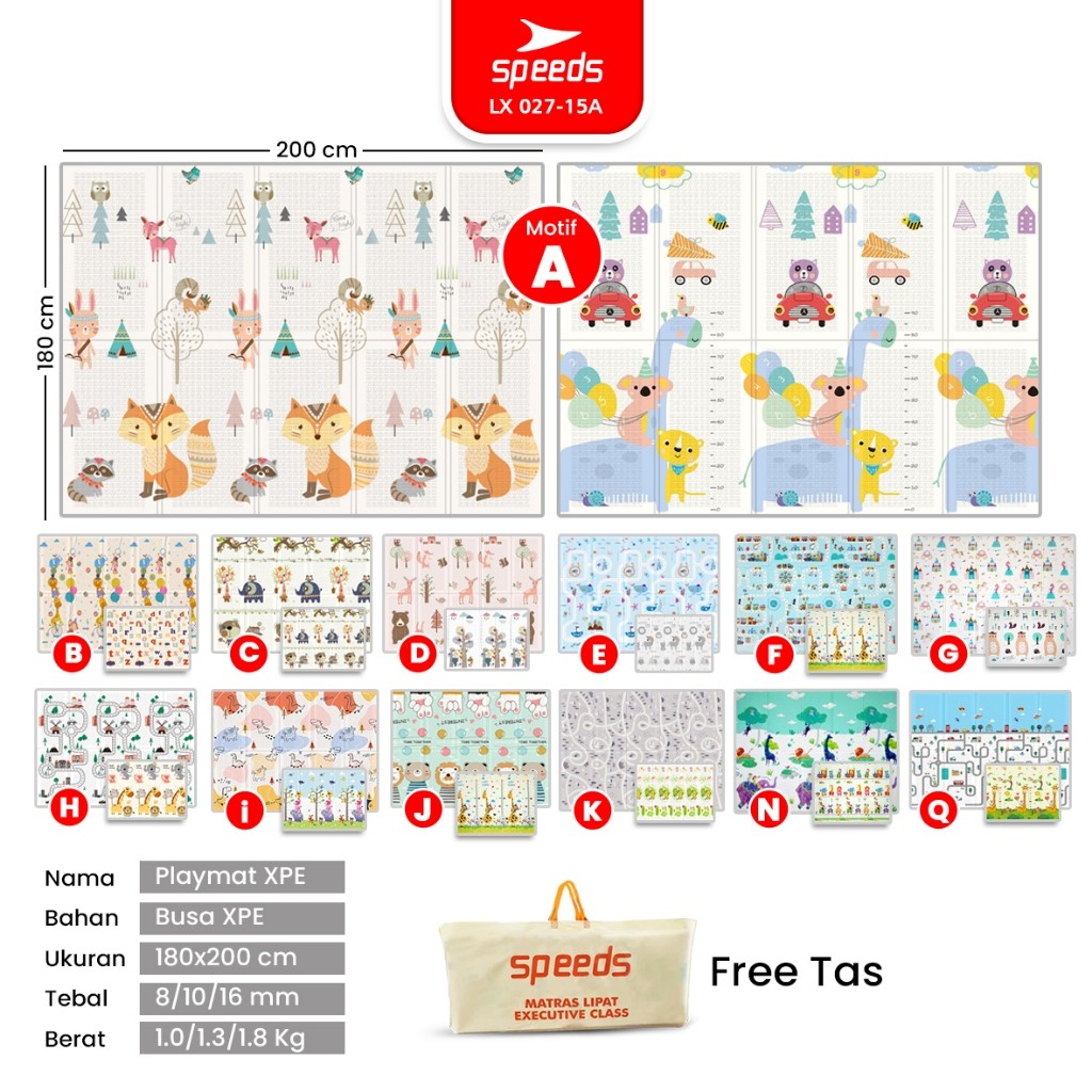 SPEEDS SNI A Playmat Bayi Karpet Lipat Playmate Matras Bayi 180x200cm Playmat Bayi Anak/Bayi Tikar Lipat Foam 027-15