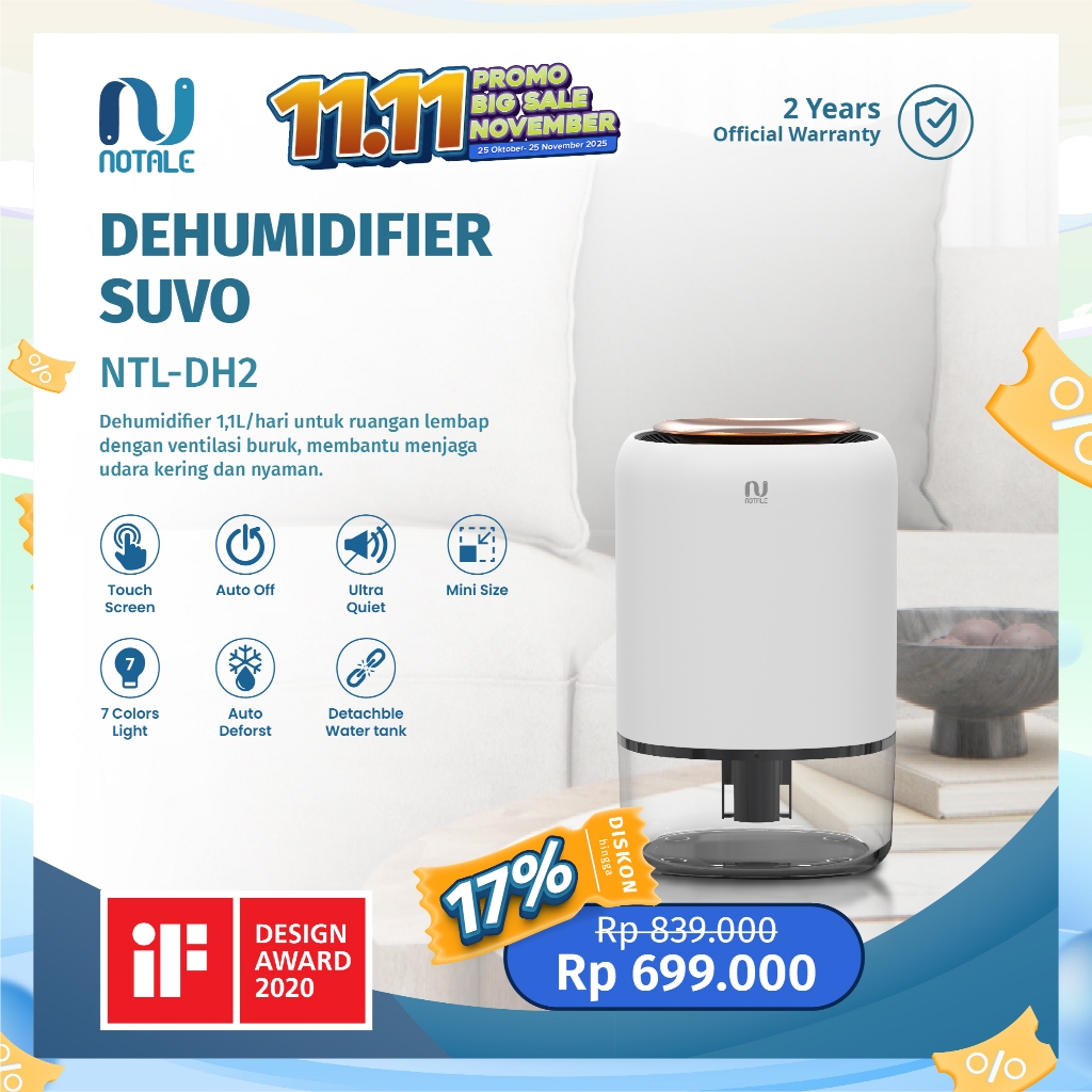 𝐏𝐑𝐎𝐌𝐎 Notale Dehumidifier Suvo Air Dryer Serap Kelembapan Smart Touch Humidifier Termurah Berkualitas Terbaik
