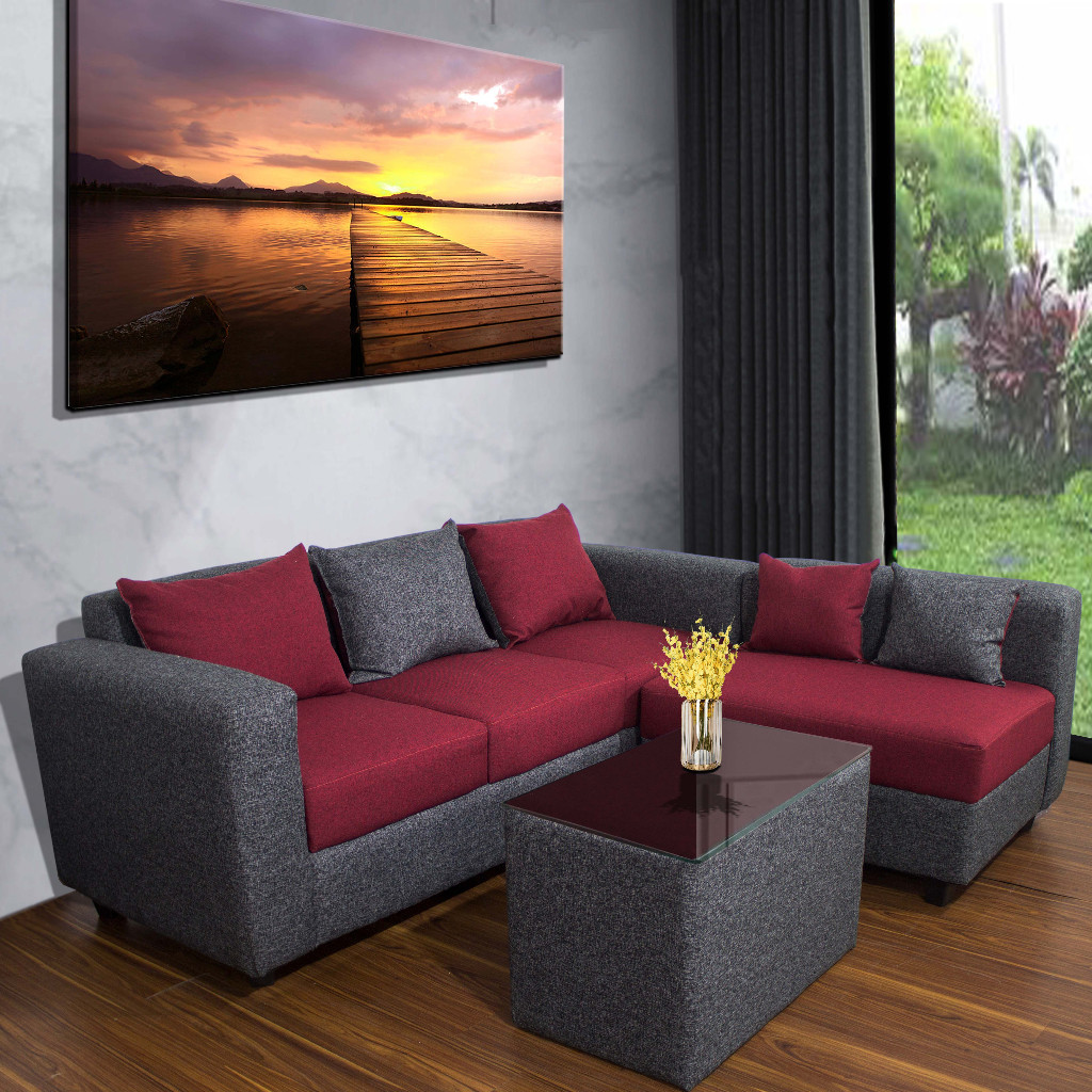 ALIFIO Sofa L/Type Mawar/Minimalis/Fabrick kanvas/Harga Ekonomis