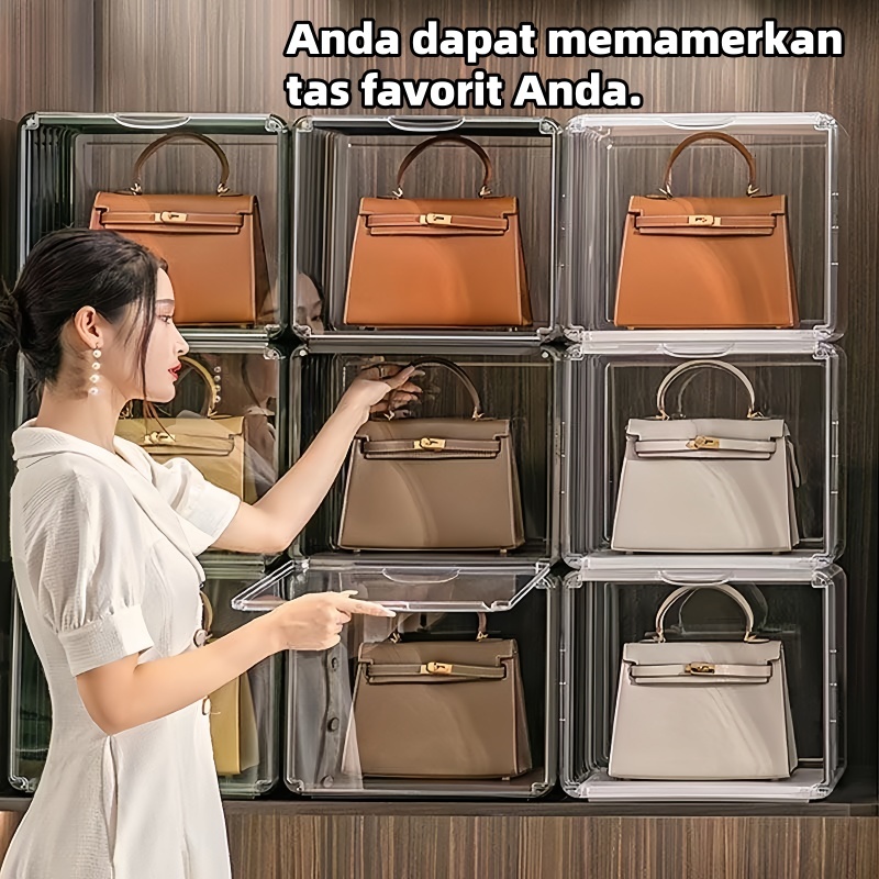 Kotak Penyimpanan Tas Akrilik Kotak Penyimpanan Sepatu Tas Buku Transparan Magnet Kotak Penyimpanan Kabinet Tahan Debu