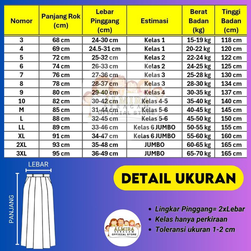 ROK PANJANG SEKOLAH SD ROK REMPEL ANAK PEREMPUAN ALMIRA SERAGAM SEKOLAH MI MERAH PUTIH HITAM HIJAU COKLAT PRAMUKA