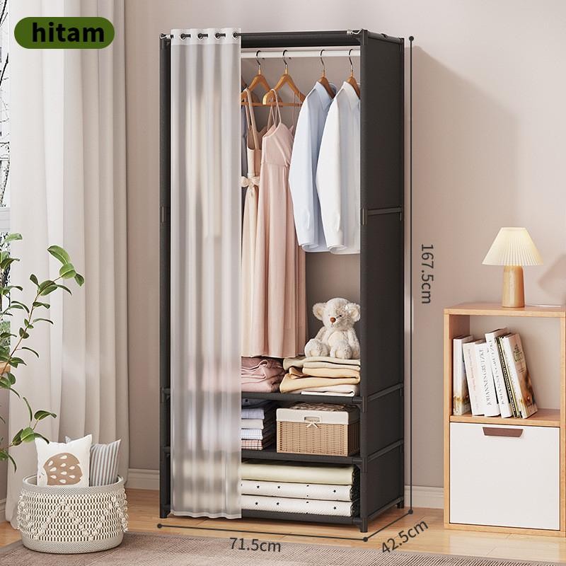 Lemari pakaian sederhana dengan tirai geser, anti serangga dan tahan debu, lemari penyimpanan pakaian berkapasitas besar, mudah dirakit, kokoh dan kuat Furniture