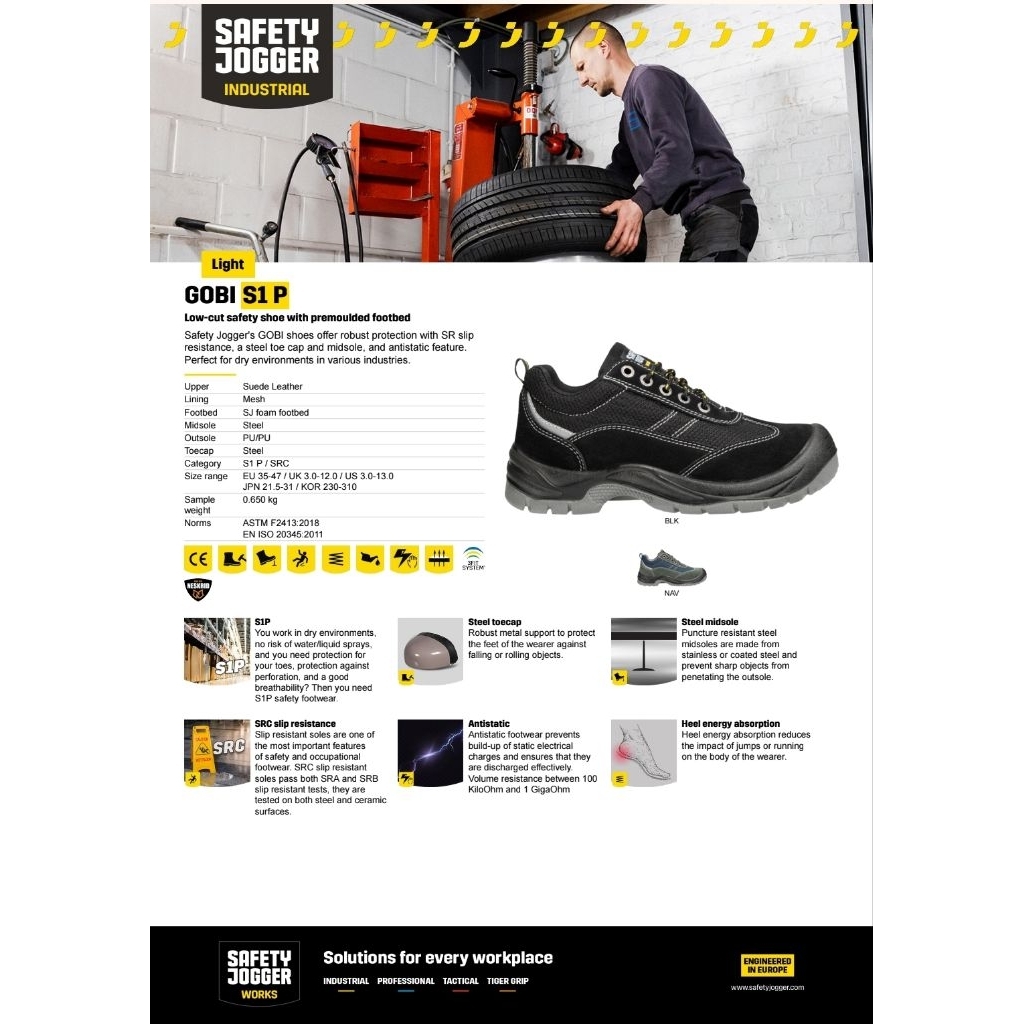 Sepatu Safety Jogger Gobi Hitam Black Original Sepatu Safety Sneakers Pria Sepatu Kerja Lapangan Sepatu Outdoor Pria