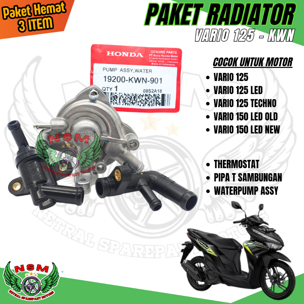 PAKET 3ITEM KWN WATERPUMP A55Y VARIO 125 + TERMOSTAT A55Y VARIO 125 + SAMBUNGAN T PIPA RADIATOR VARIO 125 / VARIO 150 KWN