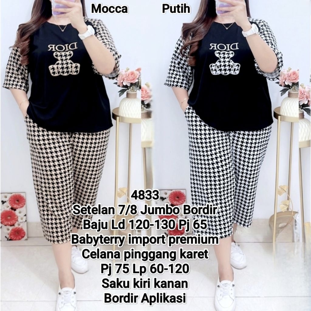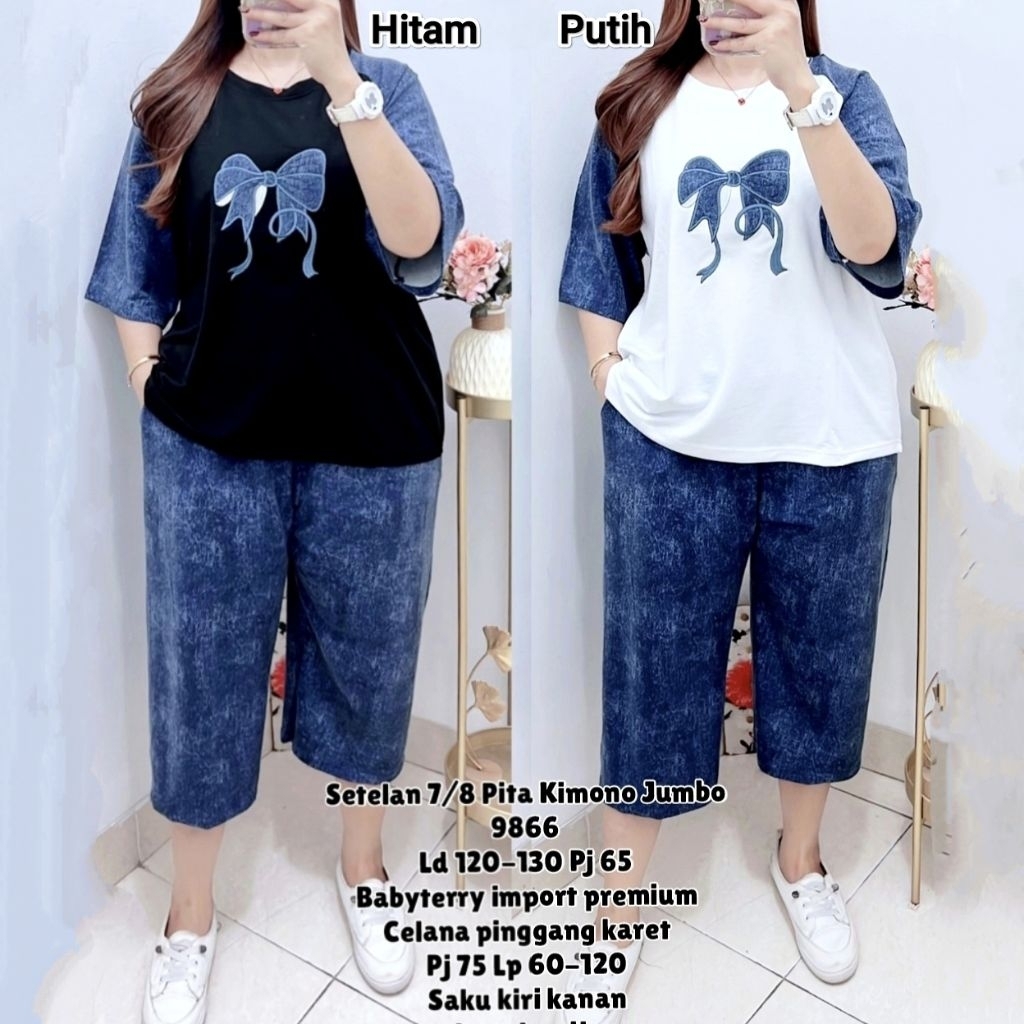 Setelan Wanita Bigsize Setelan 7/8 Cewek Jumbo Setelan Saku Bahan Babyterry Premium Halus Warna Baju LD 118-130 cm Celana LP 60-120 cm Pinggang Karet