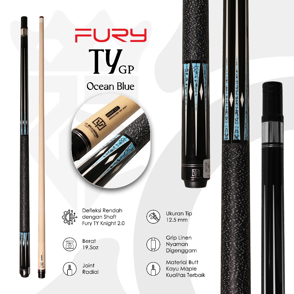 Fury TY Knight Series Maple Play Cue Stick Low Deflection Stik Billiard - Profesional Series