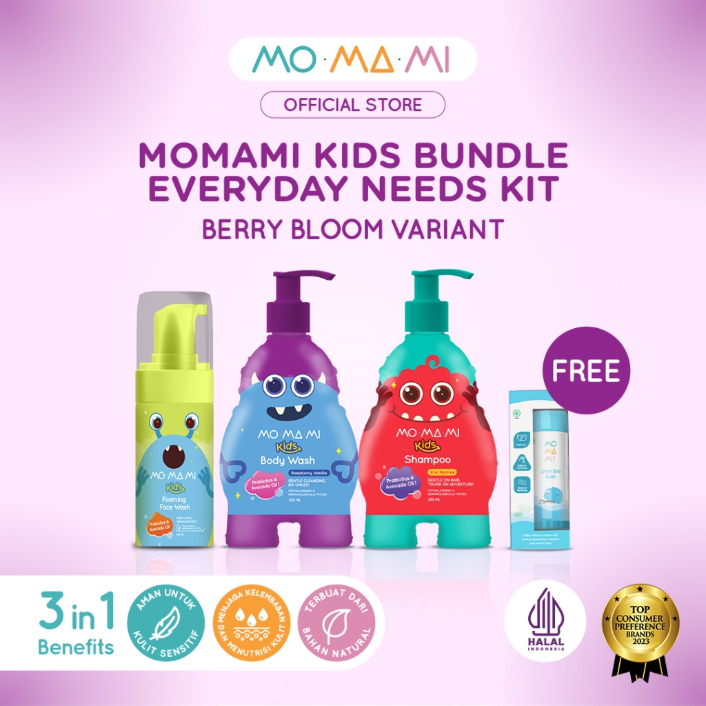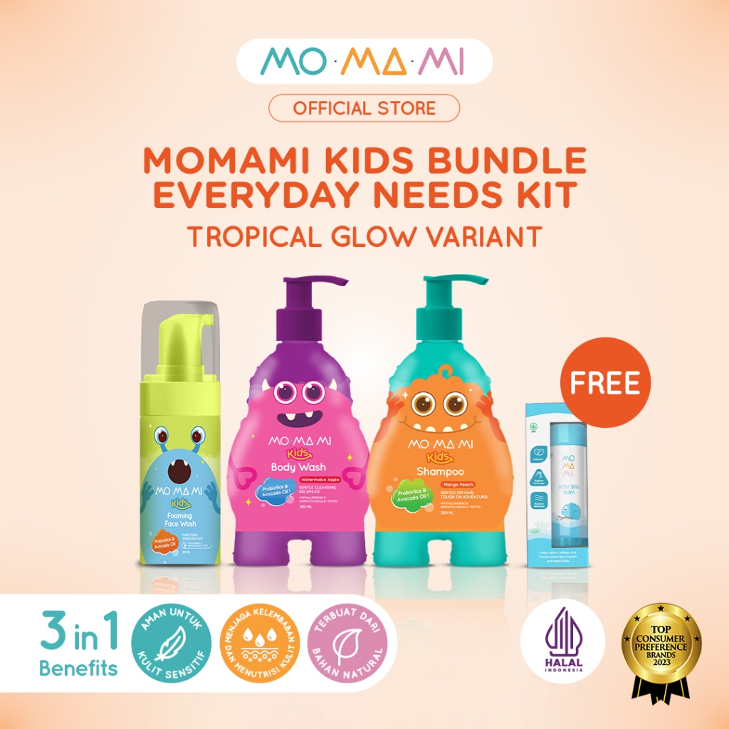 Momami Kids Tropical Splash Kit FREE After Bite Balm - Paket Sabun Sampo Anak Aman dari Gigitan Serangga