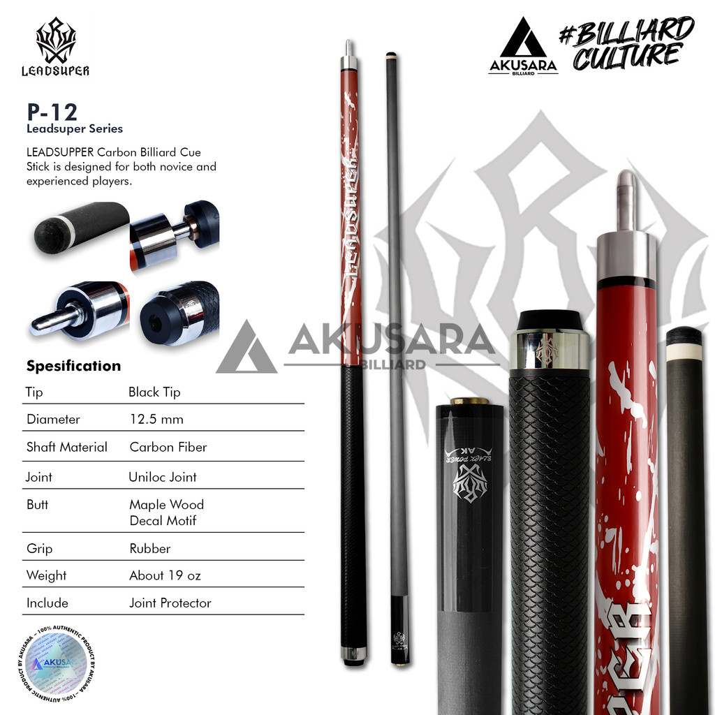 Stik Biliard Leadsuper P12 Series Cue Play Shaft Carbon Stick Billiard
