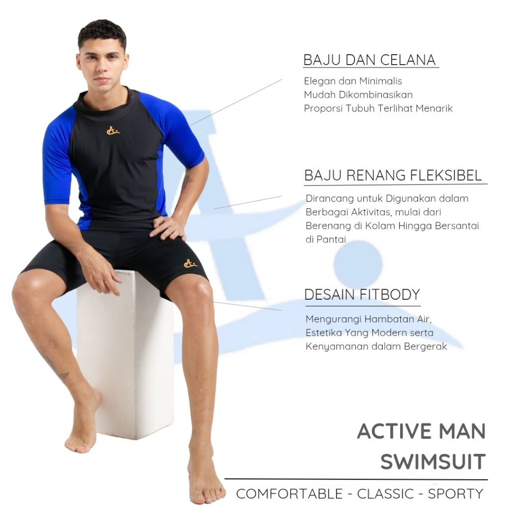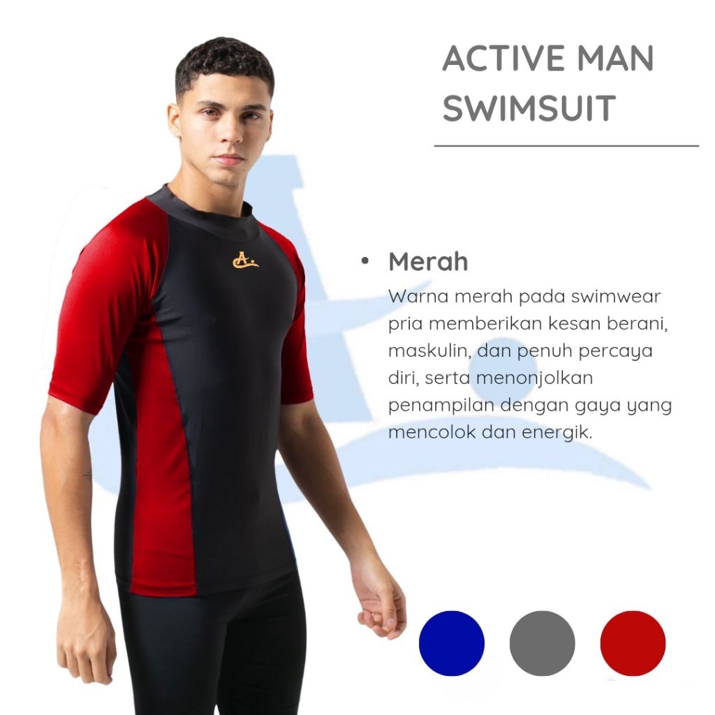Setelan Baju Renang Pria Wanita Laki Laki Celana Lengan Pendek Atas Bawah Big Size Jumbo Active Sports