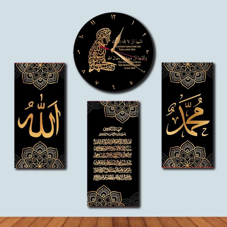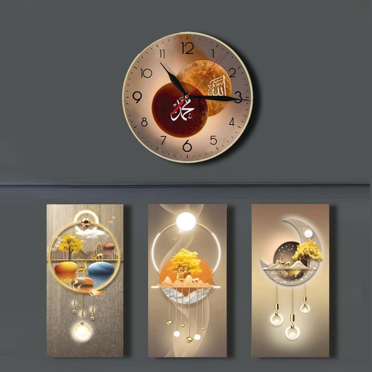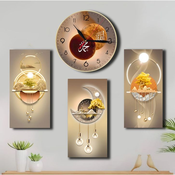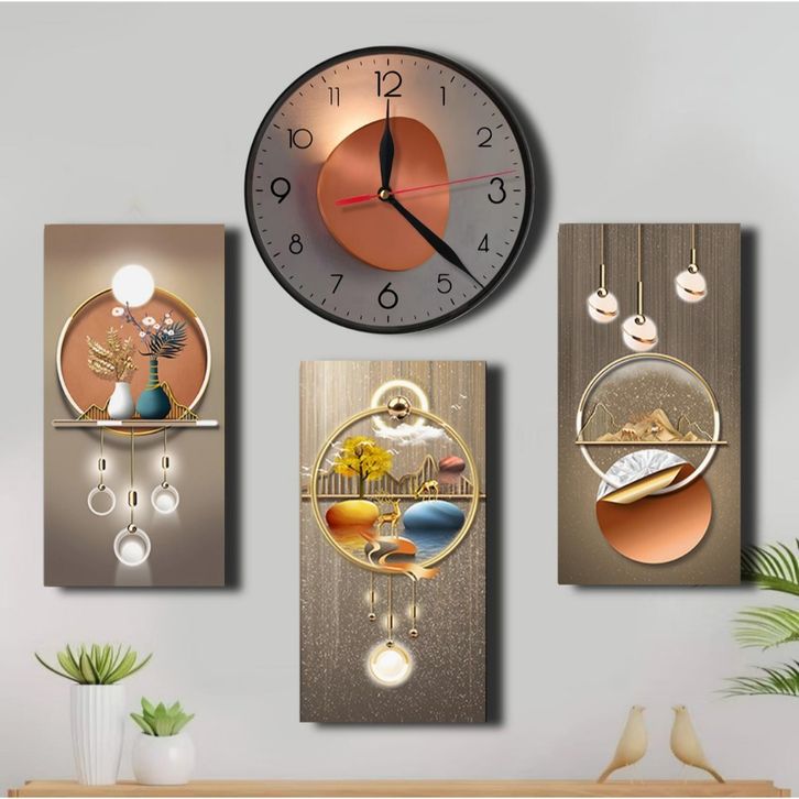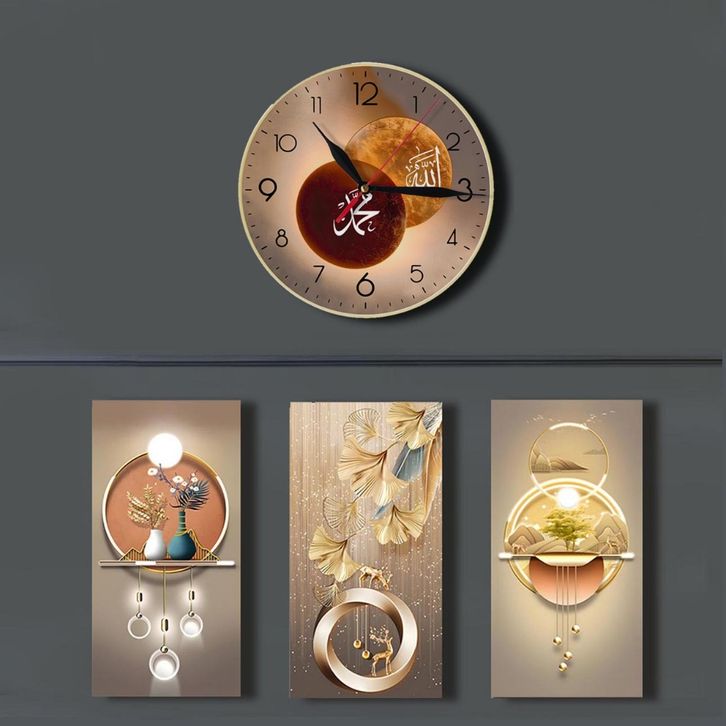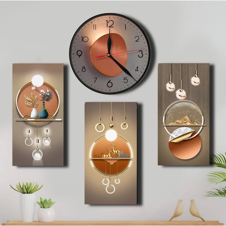 Jam Dinding Aesthetic Mewah 1 Set Dapat 4 Hiasan Dekorasi 3D Ruang Tamu Rumah Minimalis