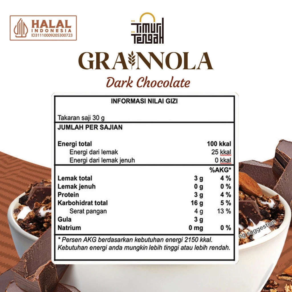 Grainnola Dark Chocolate 500 gr Granola Sarapan Sehat Kaya Serat Sereal Praktis Camilan Rendah Kalori Vanilla Honey, Blu