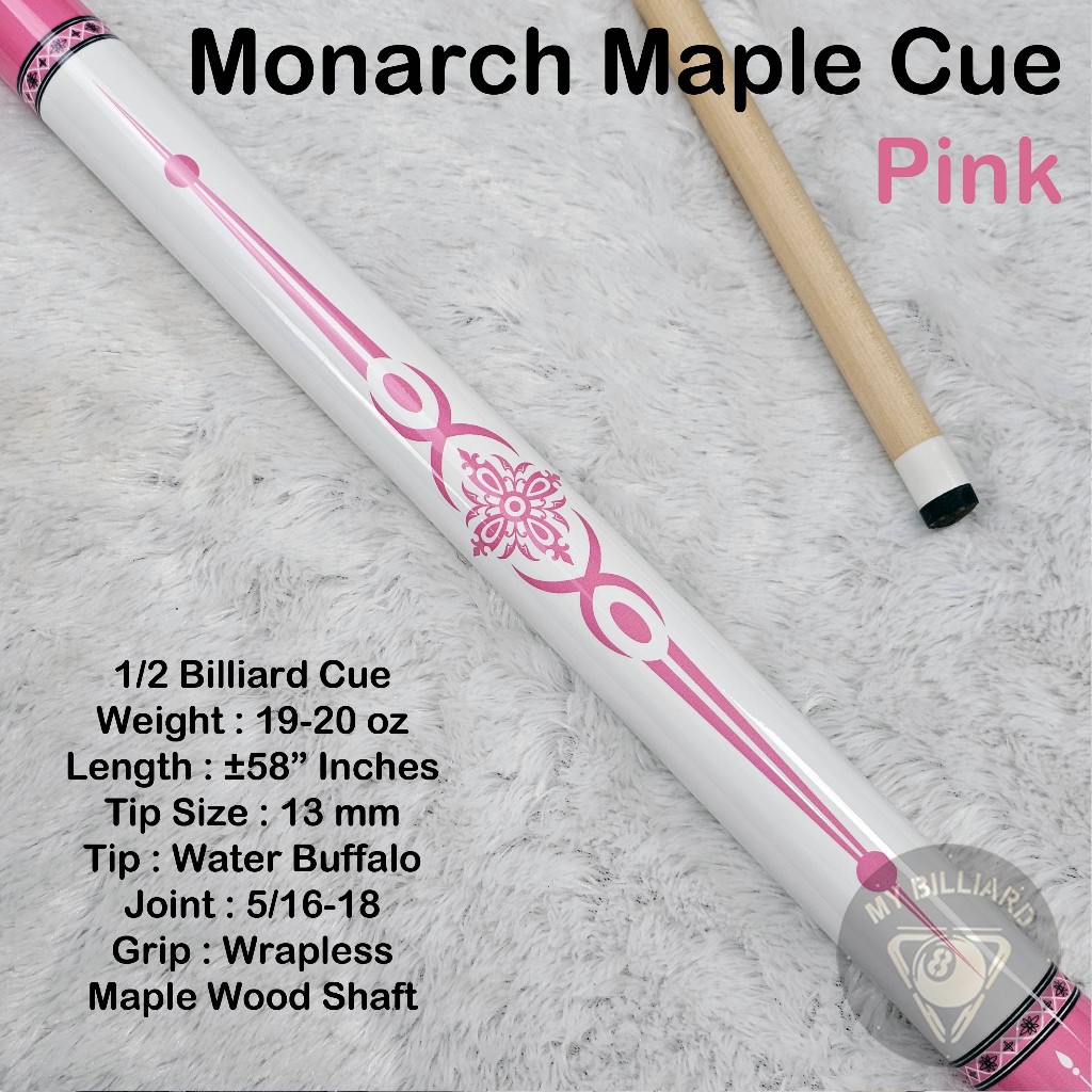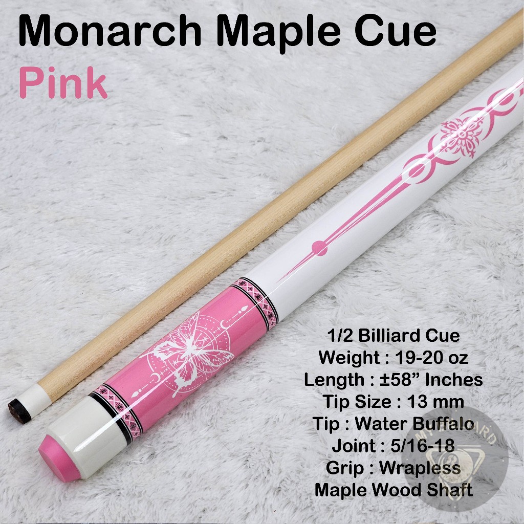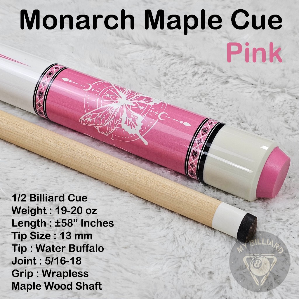 Monarch Pink Cue Stick Billiard 13mm - Stik Billiar Maple Monarch 13 mm