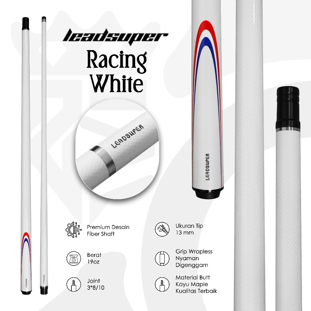 LEADSUPER RACING WHITE - Premium Design Fiber Shaft Stik Billiard - Paket Lengkap Billiard Aksesoris