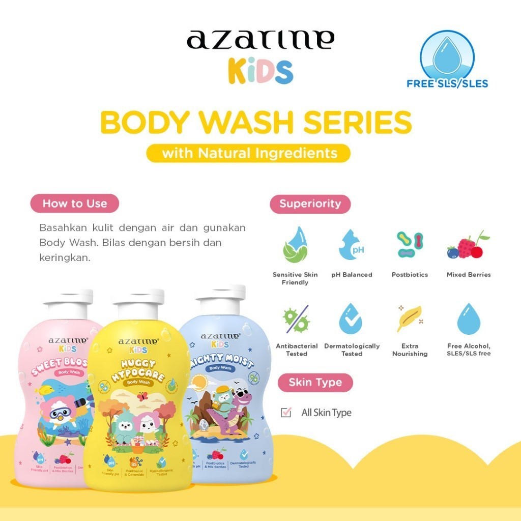 [ SERBA 125K ] Azarine Kids Fresh & Clean Duo Paket Bundle Shampoo & Body Wash Anak SLS Free 300 ml