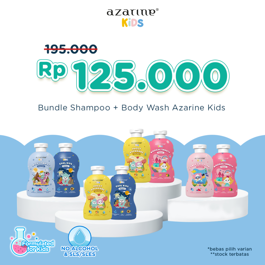 [ SERBA 125K ] Azarine Kids Fresh & Clean Duo Paket Bundle Shampoo & Body Wash Anak SLS Free 300 ml