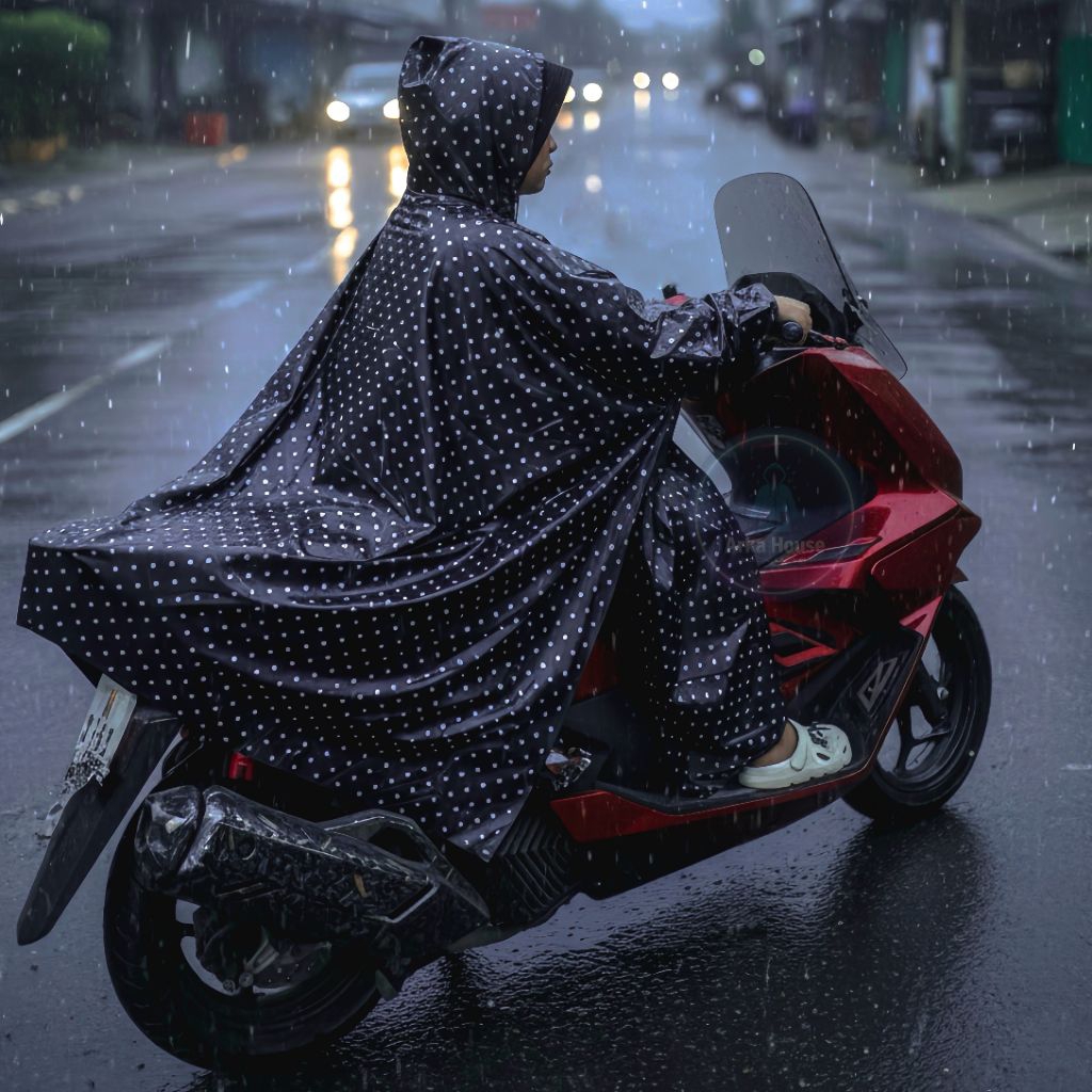 Jas Hujan Ponco Kelelawar Polkadot Lengan Panjang Anti Air untuk Pria & Wanita