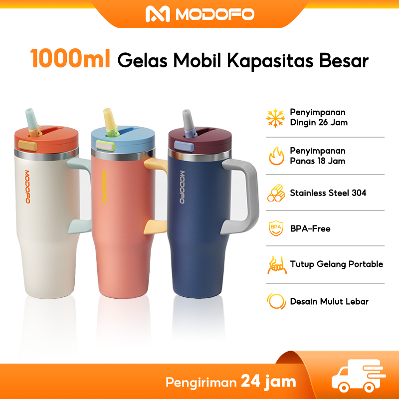 MODOFO 1000ml Tumbler Stainless Botol Minum Aesthetic Bounce Tumbler Tahan Panas Dan Dingin 24 Jam