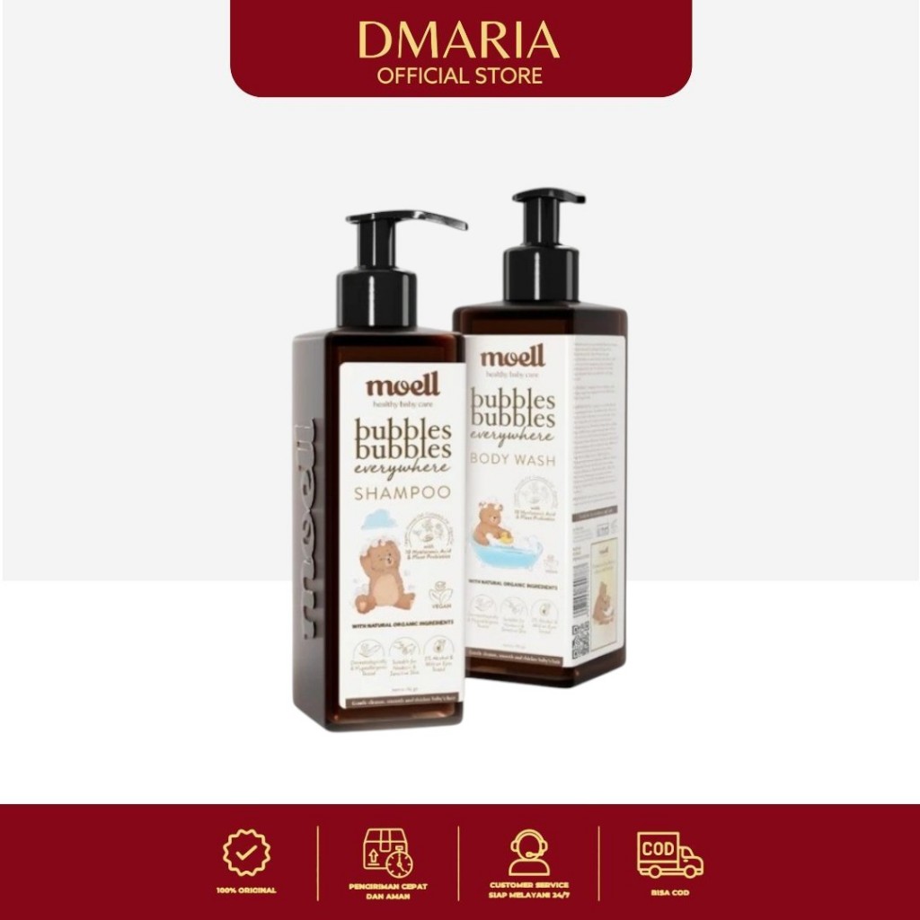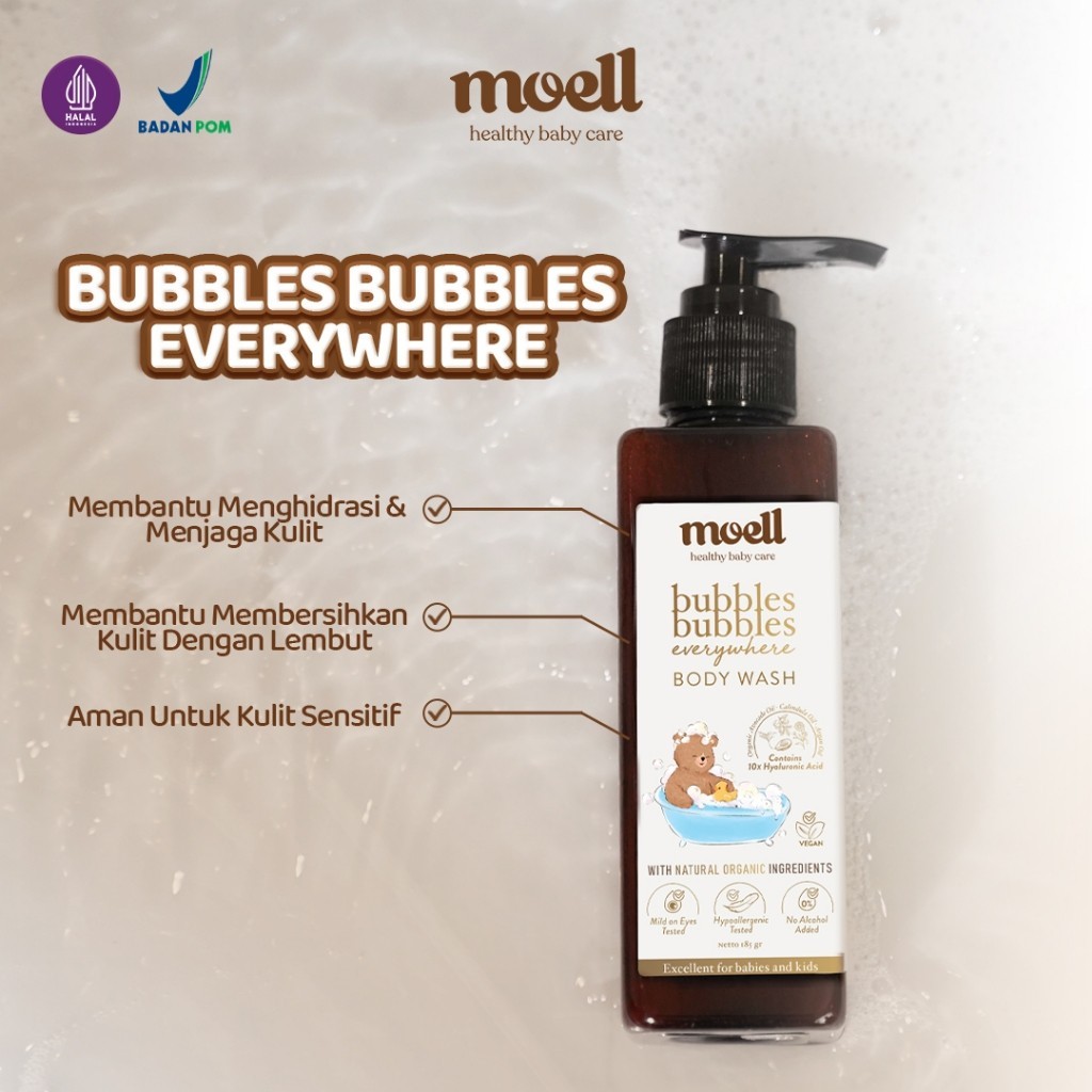 Moell Body Wash 185gr & Shampoo 185gr - 2 IN 1 Baby Bath Sabun & Sampo Bayi Anak Cegah Eksim