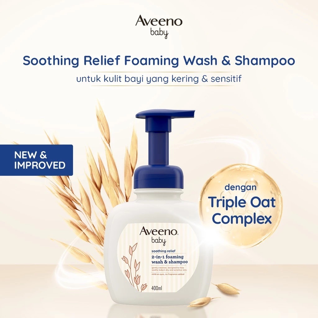 Aveeno Baby Soothing Relief Foaming Wash & Shampoo 400ml / Sabun Shampoo Bayi / Baby Wash Shampoo