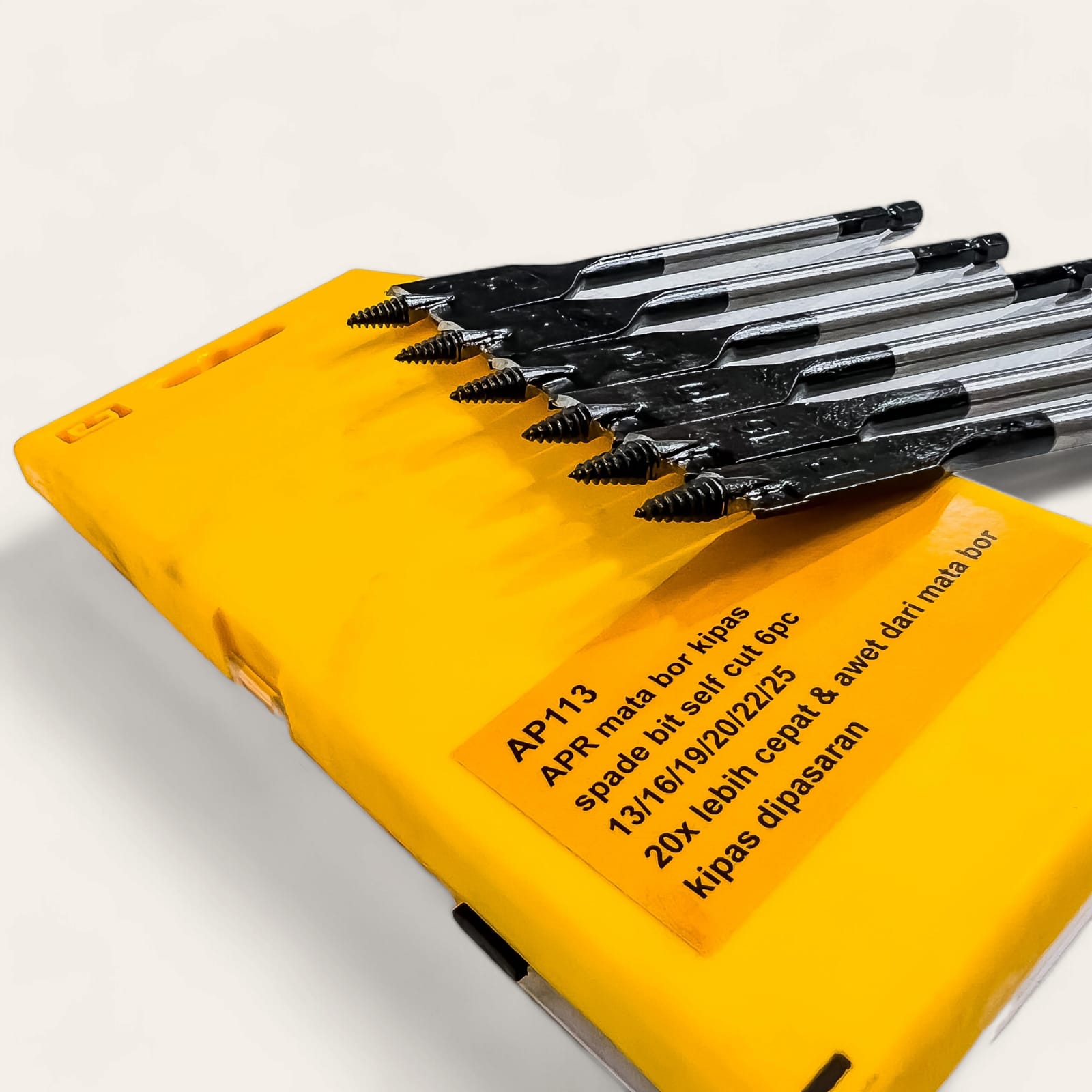 APR Mata Bor KIPAS Spade Bit Self Cut Type AP113 Fullset Mata Bor Kayu 13 16 19 20 22 25 mm Ujung Ulir & Pangkal Hex Gar