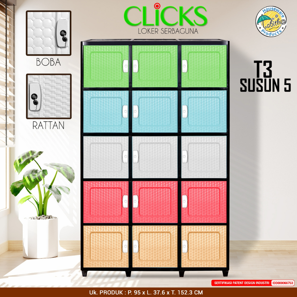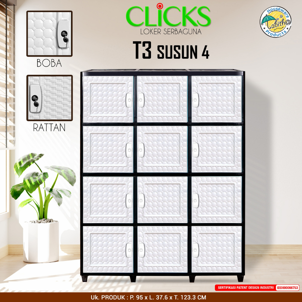 [GRATIS ONGKIR] Tabitha Lemari Plastik Minimalis Loker Helm Anti Jamur Anti Rayap Murah - Clicks T3