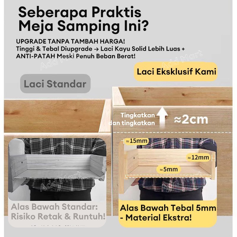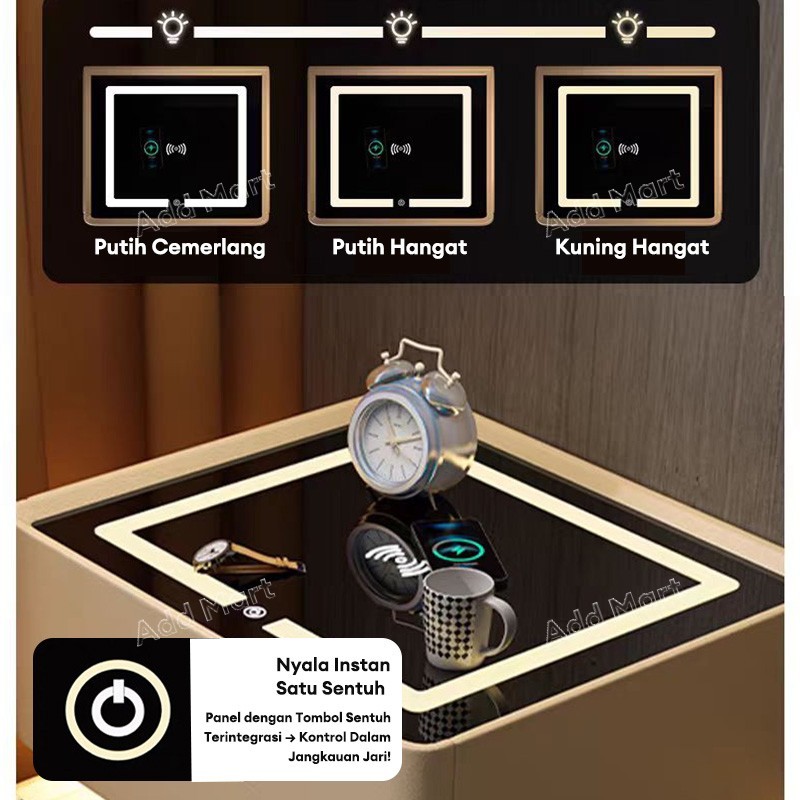 Meja Nakas - USB / LED Lemari Kayu Meja Samping Tempat Tidur Cerdas Pengisian Daya Nirkabel Meja Aesthetic Kamar Tidur