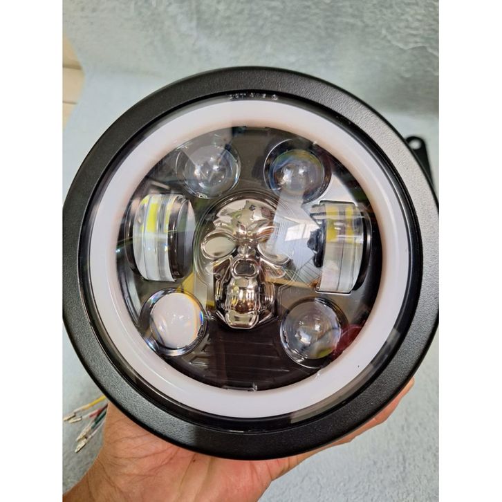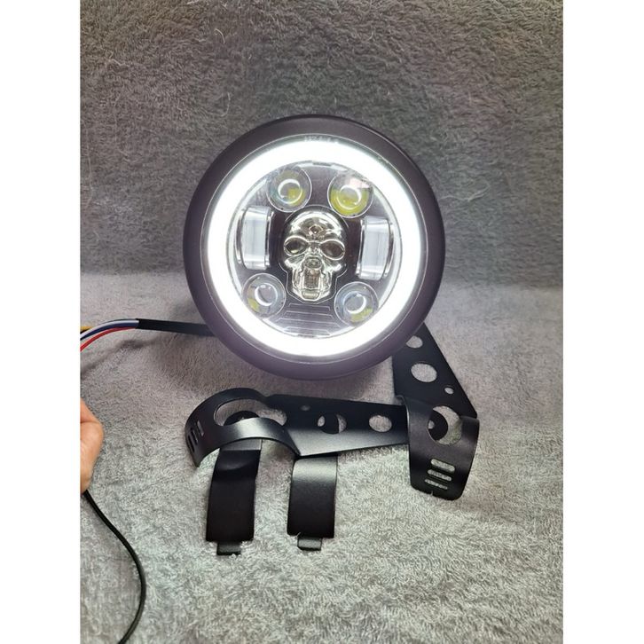 lampu motor lampu depan daymaker LED almunium 5.7inch bulat tengkorak set kuping universal motor ubahan rx king cb vixi
