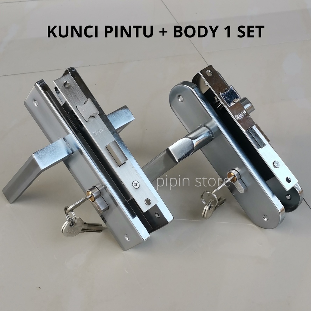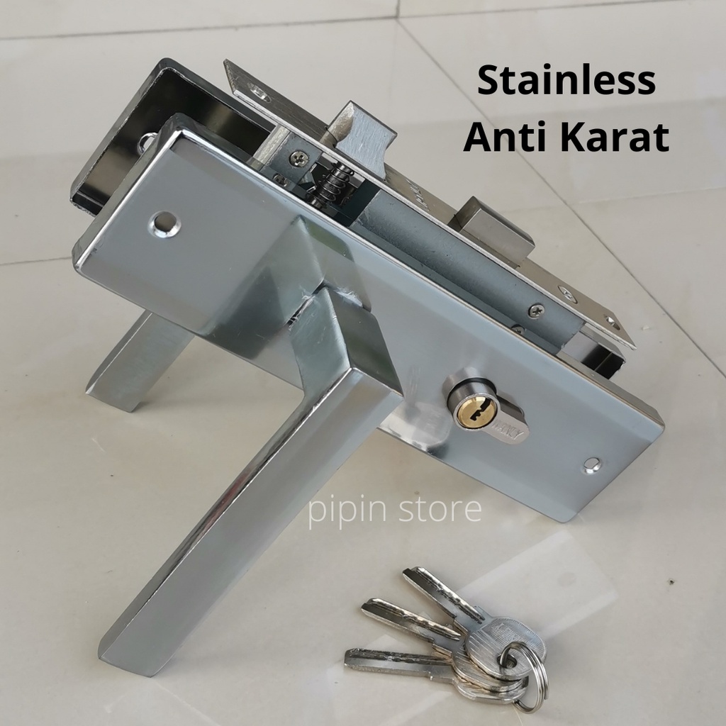 Kunci Pintu Rumah Besar Ukuran 25 cm 20 cm Gagang Handle Pintu Rumah Besar 1 Set Kunci Lengkap Body Kunci Ongkel Engkol Pintu Stainless Steel Murah