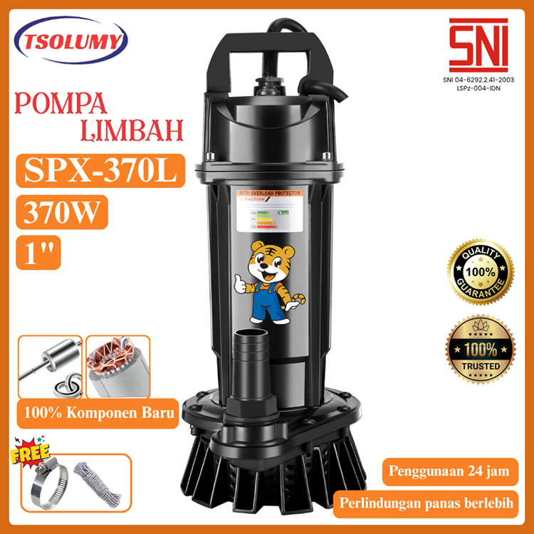 Tsolumy Pompa Celup Air Kotor Spx-370 L Kedalaman Submrsible Pump 1inch Pompa Kolam Ikan