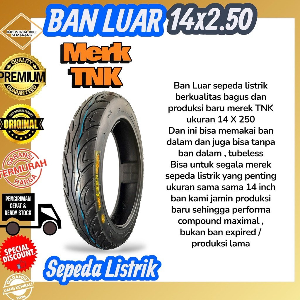 ( TNK 14x2.50 ) Ban Luar Sepeda Listrik / Ban Dalam Selis Motor Electric Bike Ukuran Size 14 x 2.50