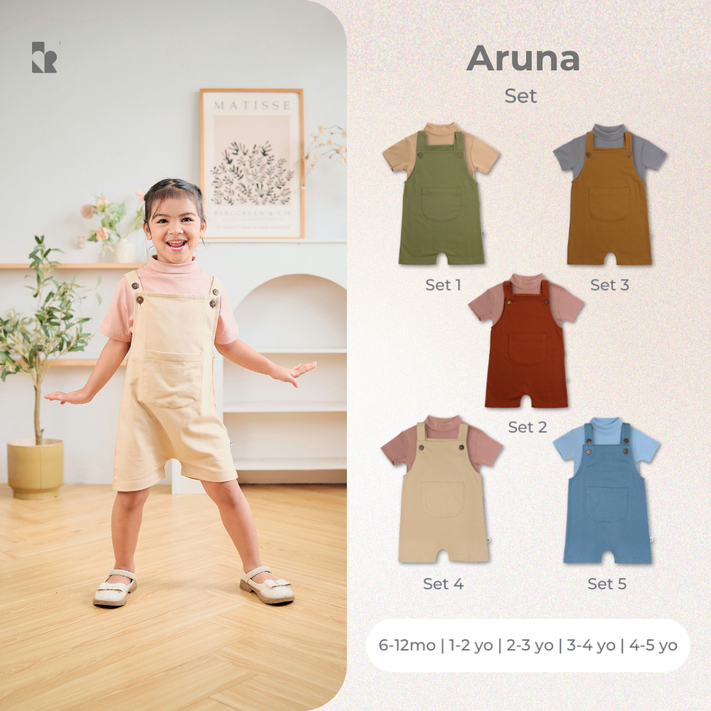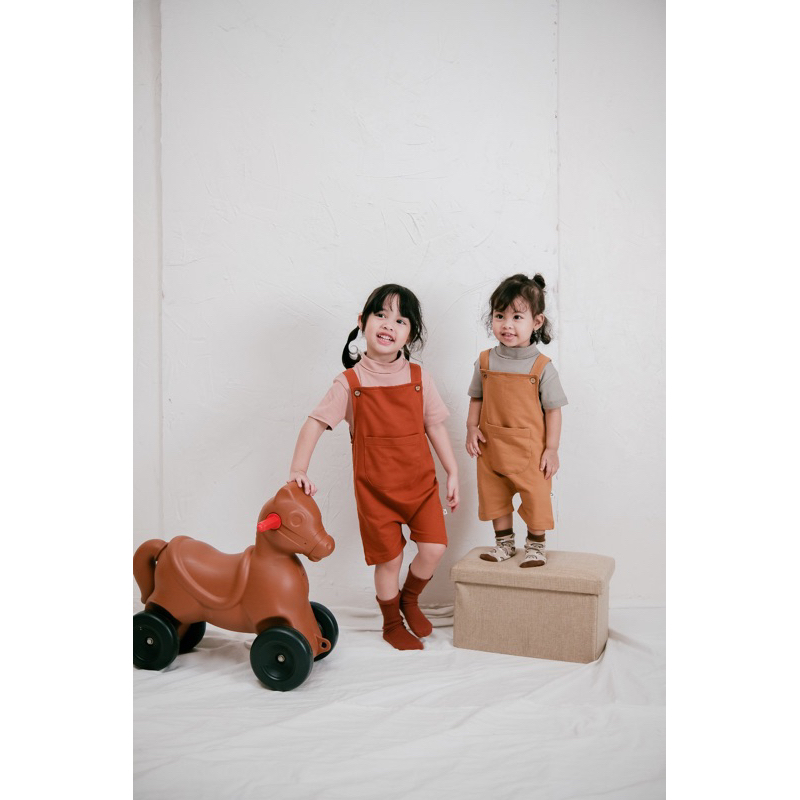 Kindr Aruna Setelan Overall Jumpsuit Dan Kaos Lengan Pendek Anak Perempuan Laki-Laki 1 - 5 Tahun