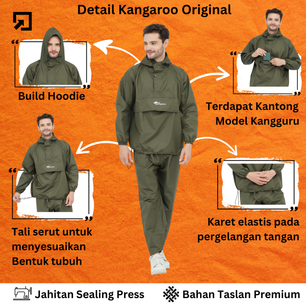Jas Hujan Kangaroo Original Pengandara Motor 100 PERSEN Waterproof Full Seal Premium Taslan Anti Rembes
