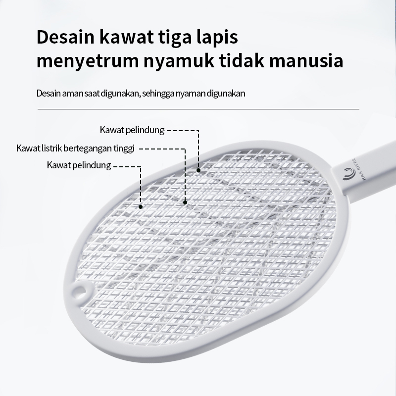 Raket Nyamuk Elektrik HAN RIVER HRDWP01WT 3in1 500mAh Ori Cas Tahan Lama Murah Awet Listrik Baterai Luby Starco Bolde