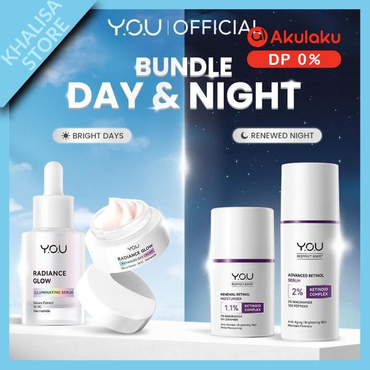 YOU Skin Boosting Day & Night Bundle YOU Radiance Glow & Retinol / KHALISA STORE / SKINCARE MAKEUP ORIGINAL / SET PAKET